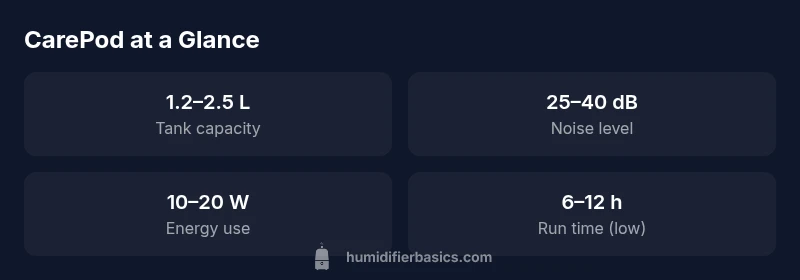 If you’ve been wondering is carepod humidifier worth it, start by understanding its intended use. CarePod is designed as a compact, ultrasonic, cool-mist humidifier that fits neatly on nightstands, desks, or small side tables. It targets small-to-medium rooms such as bedrooms, nurseries, and home offices where you want steady humidity without a big footprint. For renters or homeowners dealing with seasonal dryness, CarePod offers a simple, low-maintenance option that pairs well with standard distilled or purified water. According to HumidifierBasics, CarePod provides reliable humidity control with a compact footprint, making it a practical choice for small rooms. It’s not built for sprawling living spaces or for users seeking heavy-duty, high-output models. If your priority is a straightforward device that minimizes noise and fuss, this model is worth a closer look, especially in dry climates.