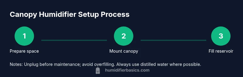 According to HumidifierBasics, canopy humidifier instructions matter because this type of humidifier sits near the plant canopy or living space and requires careful placement, water care, and safety checks to perform reliably without unintended moisture on walls or electronics. Canopy humidifiers are designed to modulate humidity for a defined zone, which means improper setup can create hot spots, mold risk, or wasted energy. A clear set of canopy humidifier instructions helps homeowners and renters avoid common mistakes, such as mounting the unit too close to a heat source, running the device with dirty water, or neglecting regular cleaning. The instructions guide you through the lifecycle of the product from unboxing and assembly to daily operation and periodic maintenance. The result is a safer, more consistent humidity level that supports comfort, plant health, and indoor air quality, while also extending the life of the device. Throughout this article, you’ll find practical steps, cautions, and visuals to help you implement best practices in real homes.