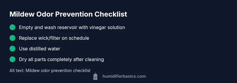 If your humidifier smells like mildew, you’re likely dealing with microbial growth in the water reservoir, wick/filter, or base. In humidifier systems, damp, warm environments invite mold and bacteria to thrive. Ultrasonic units—especially with sealed water tanks—can trap moisture and mineral buildup that harbor odors. Hard water leaves mineral scale that becomes a breeding ground for bacteria if the unit sits unused for days. Contaminated cleaning tools or unclean air intake can also reintroduce mold spores. To assess, inspect the tank for visible mold or slimy residue; discoloration is a sign of mildew. Do not ignore a persistent odor; even faint smells indicate biofilm that spreads if not addressed. Regular maintenance, including weekly cleaning and using distilled water, reduces this risk. The HumidifierBasics team emphasizes that prevention beats remediation, especially in bedrooms and living spaces where people spend hours.