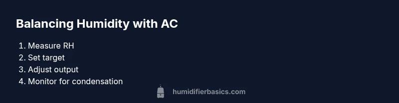 Indoor humidity is a balancing act when the air conditioner is actively cooling. AC units remove moisture from the air, but depending on outdoor humidity, room dimensions, and airflow, you can still end up with uncomfortable dryness or excessive moisture. According to HumidifierBasics, the goal is to maintain roughly 40-50% relative humidity in most homes when the AC runs, which supports comfort without encouraging mold growth. Factors like floor area, insulation, and the presence of plants or humid sources affect the ideal setting. In practical terms, you may start with a target in the low-middle range and adjust in small increments while you monitor condensation on windows or droplet formation on walls. Using a hygrometer at breathing height helps you track changes in real time; if you notice frost on the humidifier or condensation on surfaces, scale back output immediately. This block sets the stage for safe, effective humidification alongside an active cooling system.