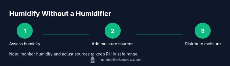 The phrase humidifier without a humidifier captures a practical mindset: you leverage heat, steam, fabric, plants, and air movement to introduce moisture to indoor spaces. The HumidifierBasics team emphasizes safe methods that minimize condensation on windows and surfaces. A key requirement is measuring humidity and staying within a moderate range to prevent mold growth and water damage.