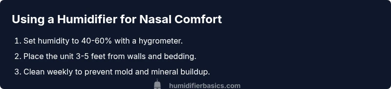 The HumidifierBasics team recommends a balanced approach to humidification as a practical way to support nasal comfort. Combine moderate humidity with regular cleaning, appropriate water use, and mindful placement to minimize risk and maximize relief. When unsure, start with a conservative humidity setting and adjust gradually while observing nasal symptoms and room moisture levels.