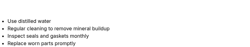 - Use distilled water and clean regularly to shield seals from mineral deposits.