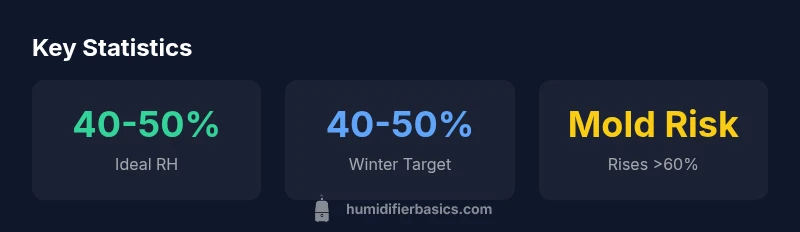 In winter, keep indoor relative humidity around 40-50%. This range balances comfort, reduces static electricity, and lowers mold risk. If rooms feel dry, aim toward 50%; if you notice condensation or damp spots, adjust toward 40%. Space size, ventilation, and climate affect the setting, so use a humidistat to maintain the target range. According to HumidifierBasics, a simple, consistent RH target is the most reliable starting point for winter humidity.