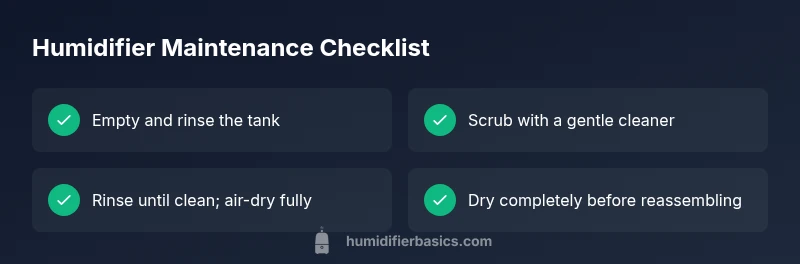Effective cleaning combines mechanical scrubbing with a gentle sanitizing rinse. Start by emptying the reservoir, then rinse with clean water. Use a mild cleaning solution recommended by the manufacturer or a safe household option like distilled vinegar solution, and scrub with a soft brush. Rinse until all traces of cleaner are gone, then air-dry all parts completely before reassembly. If odor or residue returns after a few days, repeat the cleaning cycle and consider replacing the tank or filter.