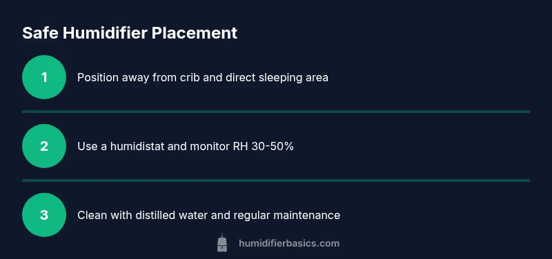 You should position a humidifier in a baby's room at a safe distance, away from the crib or changing station, and not pointing directly at the infant. According to HumidifierBasics, aim for the unit to be several feet away and use a humidistat to keep humidity around 30-50%. This guide explains exactly how to measure distance and maintain safe moisture levels.