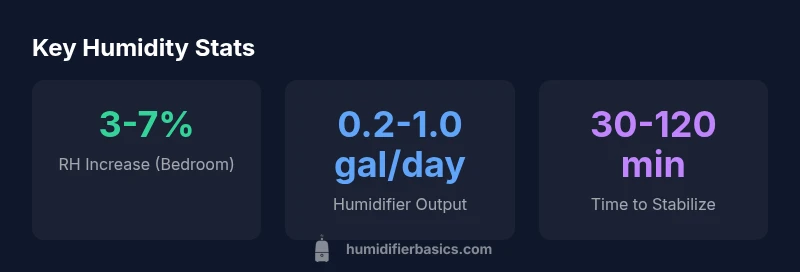 According to HumidifierBasics, understanding how a humidifier influences indoor moisture begins with the simple truth: moisture added to the air is not evenly distributed. A humidifier increases the water vapor content in its immediate surroundings, but the room-wide humidity change depends on your space size, the device’s moisture output, and how air moves through the room. If the room is small and well-sealed, a modest device can raise RH noticeably. In a large, drafty living area, the same device may produce only a small increase. The key is to match the humidifier’s capacity to the room volume and to monitor changes with a reliable hygrometer. This approach minimizes over-humidification and helps you avoid issues like condensation or mold growth. The goal is a steady, comfortable RH level rather than a quick spike.