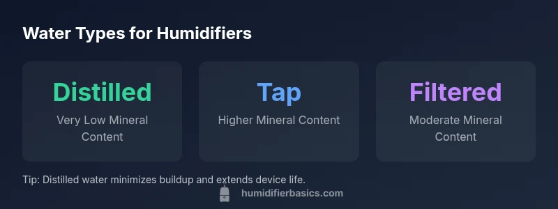 Readers often ask about the best water for a Vicks humidifier. If you’re answering the question 'vicks humidifier what kind of water', the core guidance is straightforward: select water with low mineral content to minimize white dust and buildup. In practice, this means distilled or demineralized water is usually the safest choice for long-term use. The goal is to keep mineral deposits from accumulating inside the humidifier, where they can interfere with airflow, reduce efficiency, and contribute to odors. Consistent cleaning remains a critical companion to any water choice, especially when additives such as VapoSteam are used. The HumidifierBasics team emphasizes pairing a low-mineral water with a regular cleaning routine to maintain healthy mist output and device longevity.