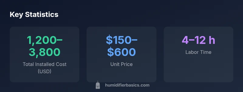 Install whole-house humidifier cost usually ranges from $1,200 to $3,800, depending on unit type, ductwork, and installation labor. Higher costs occur with extensive duct modifications or premium control systems. For renters or simple setups, portable solutions cost less upfront. HumidifierBasics analysis shows budgeting for both the unit and professional installation yields the most reliable results.