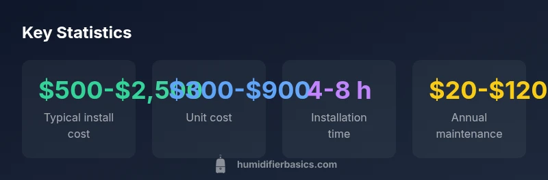 According to HumidifierBasics analysis, several factors determine the total price of a whole-home humidifier installation. The largest driver is the choice of humidifier unit itself. Steam models tend to cost more upfront than evaporative or drum-style units, both in purchase price and in installation complexity. The second major factor is compatibility with your existing furnace and ductwork. If you need to modify duct plenums, add dampers, or install a dedicated humidistat, labor hours can rise quickly. Third, electrical work and control integration add cost—if you want a smart thermostat, zoning, or a centralized humidification controller, expect additional wiring and programming. Finally, geography and contractor pricing matter: urban areas and regions with high labor rates push totals higher. Some homes require permits or inspectors, particularly if structural modifications or substantial rewiring are involved. A well-prepared estimate should separate line items for the humidifier unit, installation labor, ductwork or wiring changes, and any new controls. For homeowners, the takeaway is clear: upfront planning and precise quotes reduce the risk of sticker shock later.