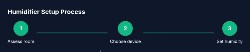 - Determine room humidity with a hygrometer. - Confirm the device is suitable for bedroom use and quiet. - Fill with distilled water and place on a stable surface. - Set the humidistat to a safe range (30-50%). - Run for 2-4 hours at a time and monitor comfort. - Clean weekly and refill with fresh water. - Keep doors and windows reasonably open to prevent excess moisture. - If symptoms persist, seek medical advice.